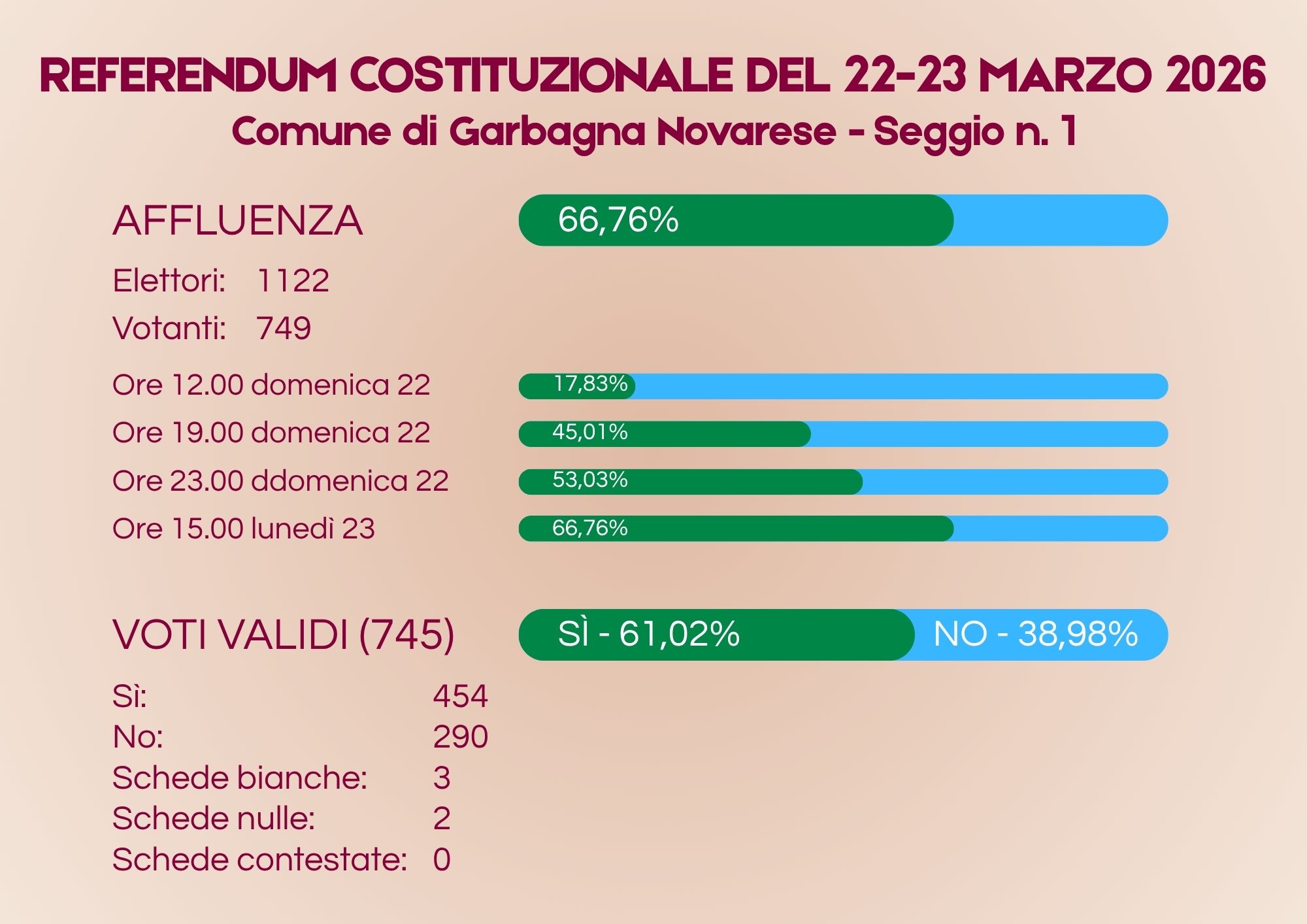 In allegato i risultati del Referendum per il Seggio n. 1 di Garbagna Novarese.