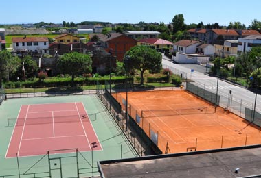 campo da tennis in terra rossa con relativa illuminazione spogliatoi e servizi