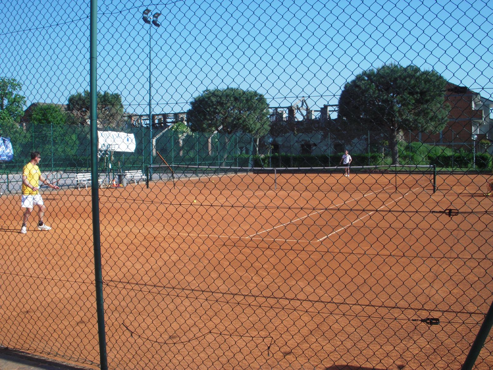 campo da tennis in terra rossa con relativa illuminazione spogliatoi e servizi